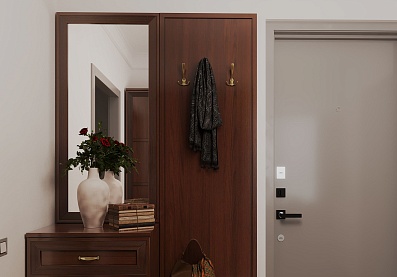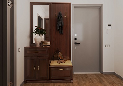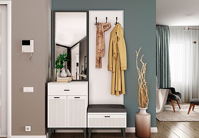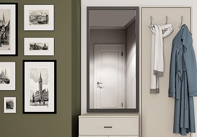 Узкие маленькие прихожие – помещения, в которых чаще всего используют востребованный стиль минимализм. Главная отличительная особенность этих комнат заключается в отсутствии лишних деталей и элементов, которые лишены функциональности и загромождают интерьер. Рекомендовано полностью отказаться от вешалок открытого типа, глубина которых негативно сказывается на сохранении свободного пространства.