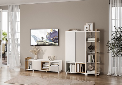 Тумба Троя с 3-мя секциями под телевизор Швейцарский вяз, Белый