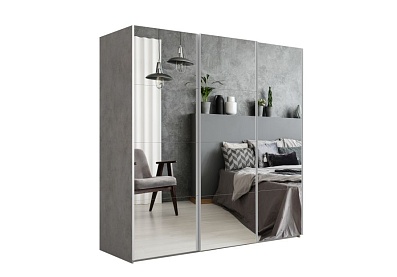 Шкаф-купе Lux 210x230 см, с зеркальными дверцами, бетон, С полками, С доводчиками