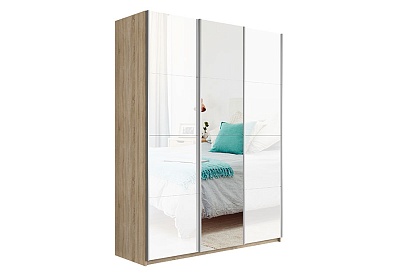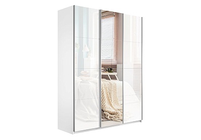 Шкаф-купе Lux 210х230х57 кашемир Белый глянец/Зеркало/Белый глянец 210x230 Кашемир , С полками