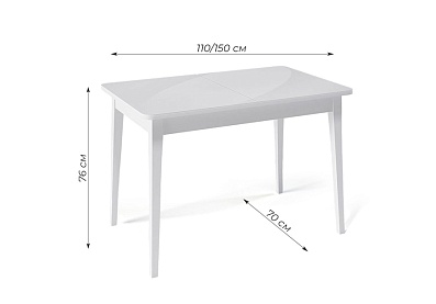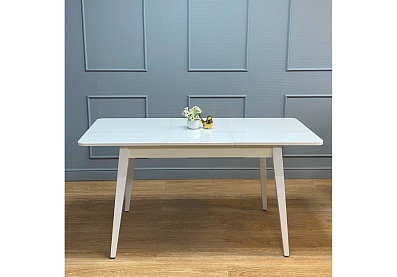 Стол обеденный Орпен прямоугольный опоры белые / столешница стекло белый сатин ЛДСП Стекло
