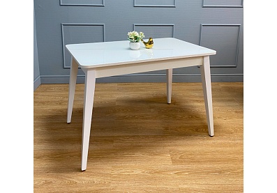 Стол обеденный Орпен прямоугольный опоры белые / столешница белый глянец ЛДСП Стекло
