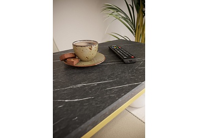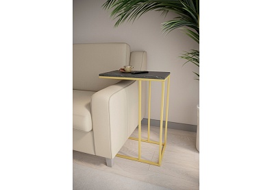 Стол Агам Голд придиванный Черный мрамор, Золотой МДФ