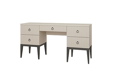 Чтобы не загромождать пространство спальни, некоторые решают приобрести столики туалетные без зеркала. Вариант осуществляется без весомых потерь, если в комнате имеется шкаф, оснащенный ростовым зеркалом. Решение смотрится оригинально и удобнее в плане свободного места на поверхности стола. Также к данному варианту обращаются, если зеркало уже имеется и расставаться с ним не хочется.