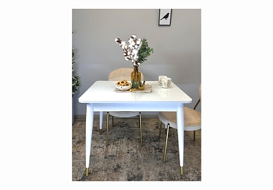 Стол обеденный Мане К1100 опоры белый(зол) / столешница белый сатин ЛДСП Стекло
