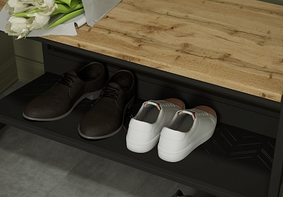 Тумба Магнум для обуви с выдвижными ящиками Дуб бунратти, Черный