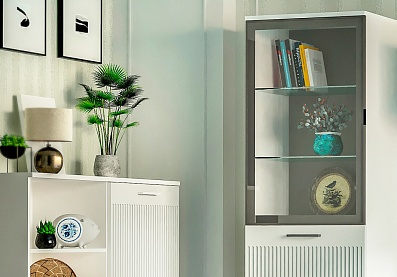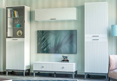 Тумба Хилтон под телевизор с выдвижными ящиками Белый премиум