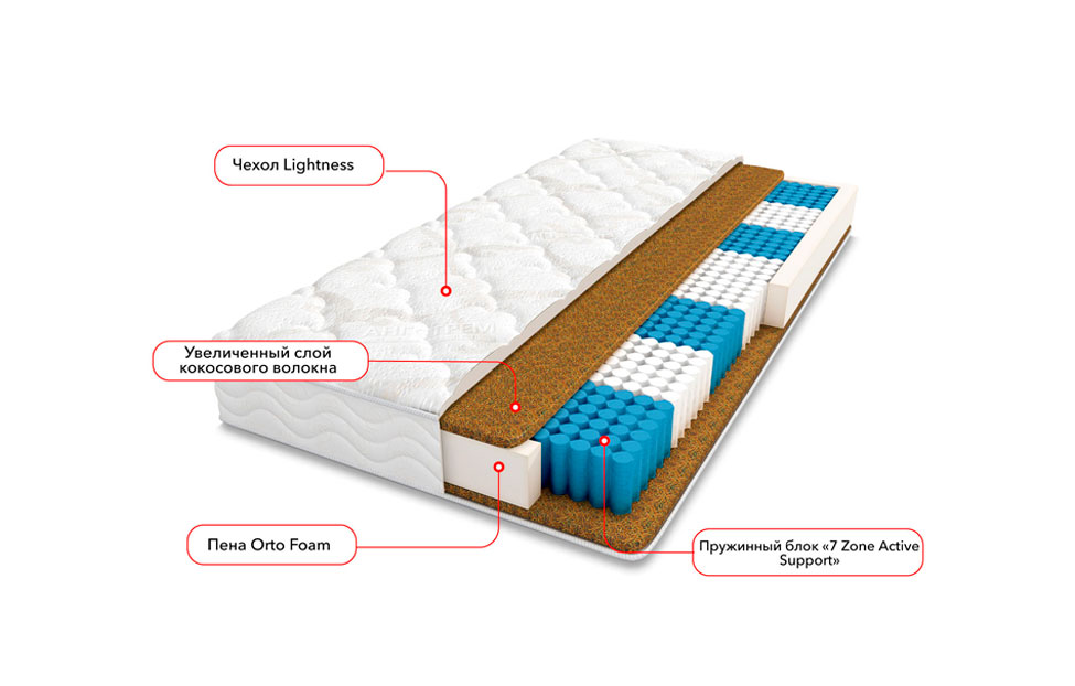 - Несъемный чехол Lightness (70% хлопок, 30% полиэстер) — 3 см;