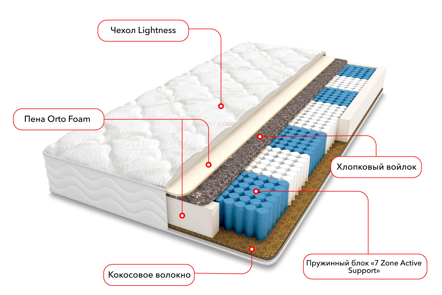 - Несъемный чехол Lightness (70% хлопок, 30% полиэстер) — 3 см;