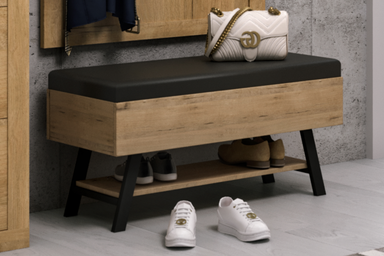 Брутальная модель сочетает в себе признаки сразу двух интерьерных стилей — колониального и лофт. Мягкий каркас выполнен из черной экокожи, цвет основания «дуб бунратти» имитирует природный рисунок древесины. Наполнение сиденья — плотный пенополиуретан. При изготовлении изделия был использован МДФ-профиль с дополнительной облицовкой кромок высококачественным материалом.