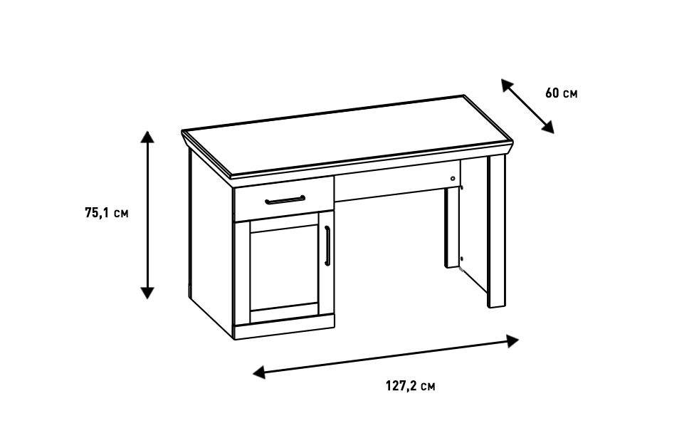 - Стол письменный с одной тумбой и рабочим местом для сидения справа;
