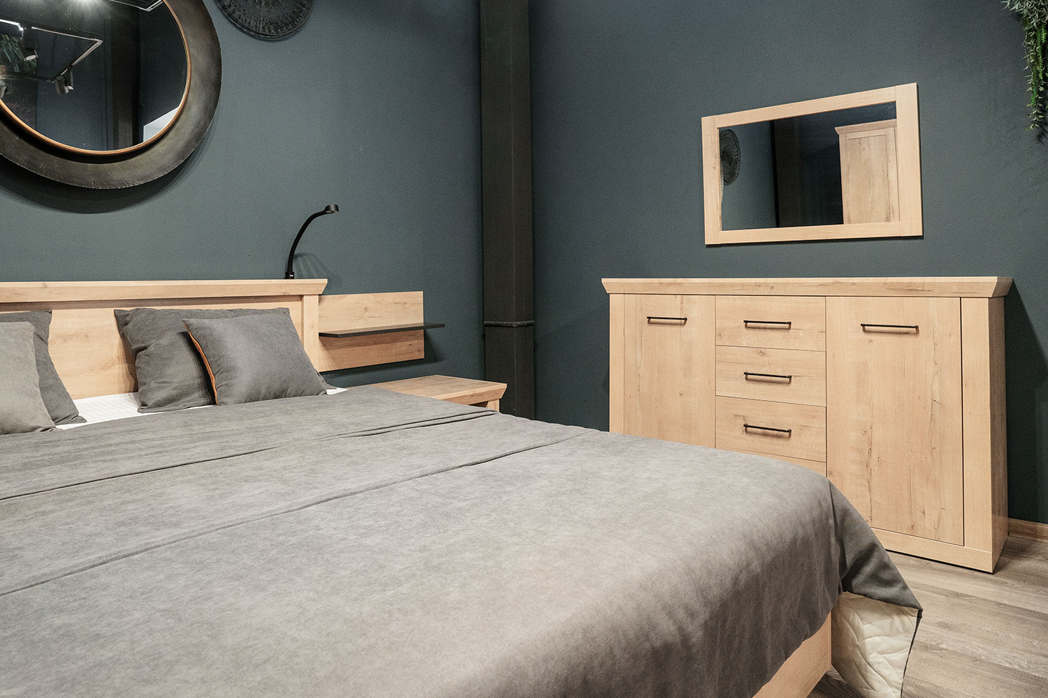 - Спальня в традиционном стиле. Такая мебель универсальна и подойдет интерьерам в стилях лофт, скандинавский, фьюжн, эко. Мебель из коллекции Магнум легко подстроится под уже имеющийся интерьер или может стать основой для нового;