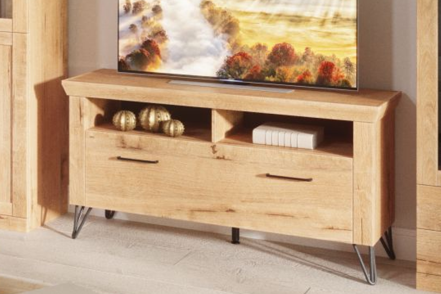 - компактная ТВ-тумба на открытых металлических опорах;