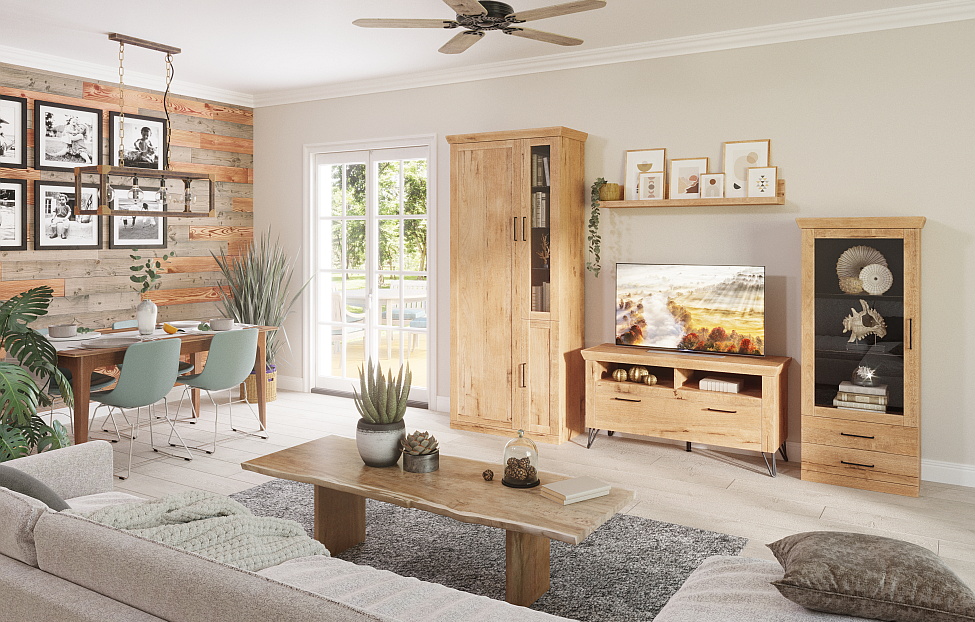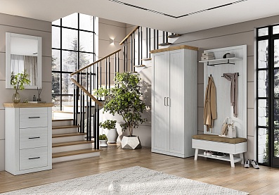 Универсальный мебельный комплект легко встроится в классический интерьер или станет основой для создания современной обстановки — эко, минимализм, сканди, лофт. Нейтральный древесный оттенок будет гармонично выглядеть как с любым базовым цветом, так и с разнообразными фактурами и материалами. Достаточно добавить нужные акценты, и вы получите свой собственный стиль.