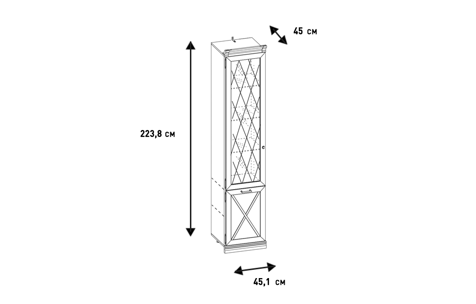 – описание: цвет блан шене, размер 223.8x45.1x45 см, стиль прованс, кантри, классический, неоклассика, назначение для книг, для посуды, многоцелевой.