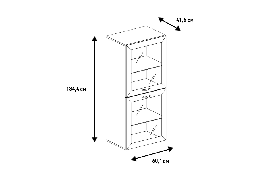 - В каждом отделении — стеклянная полка за рамочной дверью со стеклом;
