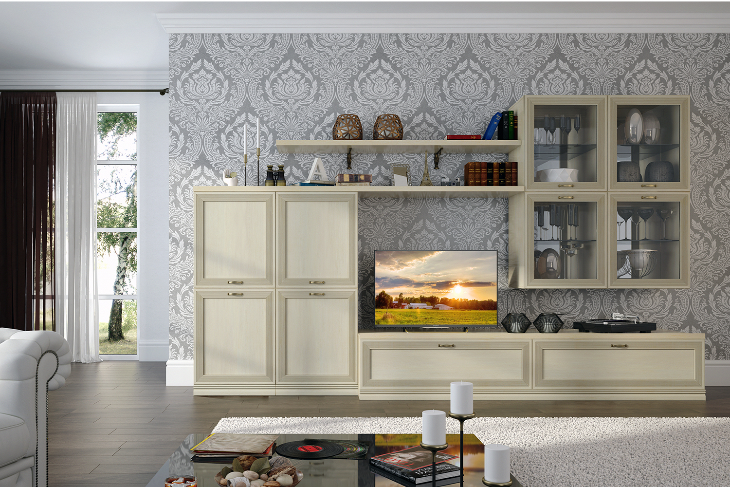 - Отделка фасадов выполнена испанским акриловым лаком и патиной (эффект состаренного дерева);