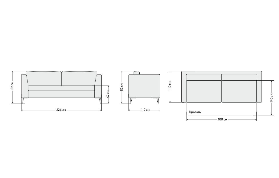 - Высота опор: 17 см (подходит для большинства моделей роботов-пылесосов, измерьте свою модель пылесоса перед покупкой дивана);