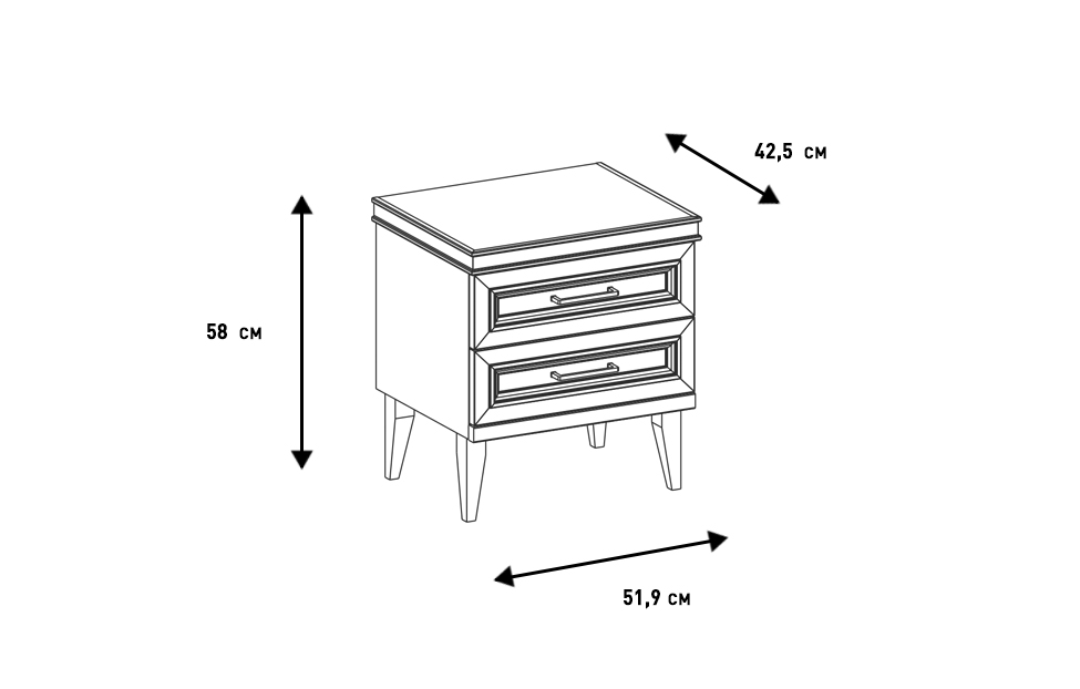 – описание: стиль английский, неоклассика, назначение для спальни, цвет ярко-серый, размер 58x51.9x42.5 см.