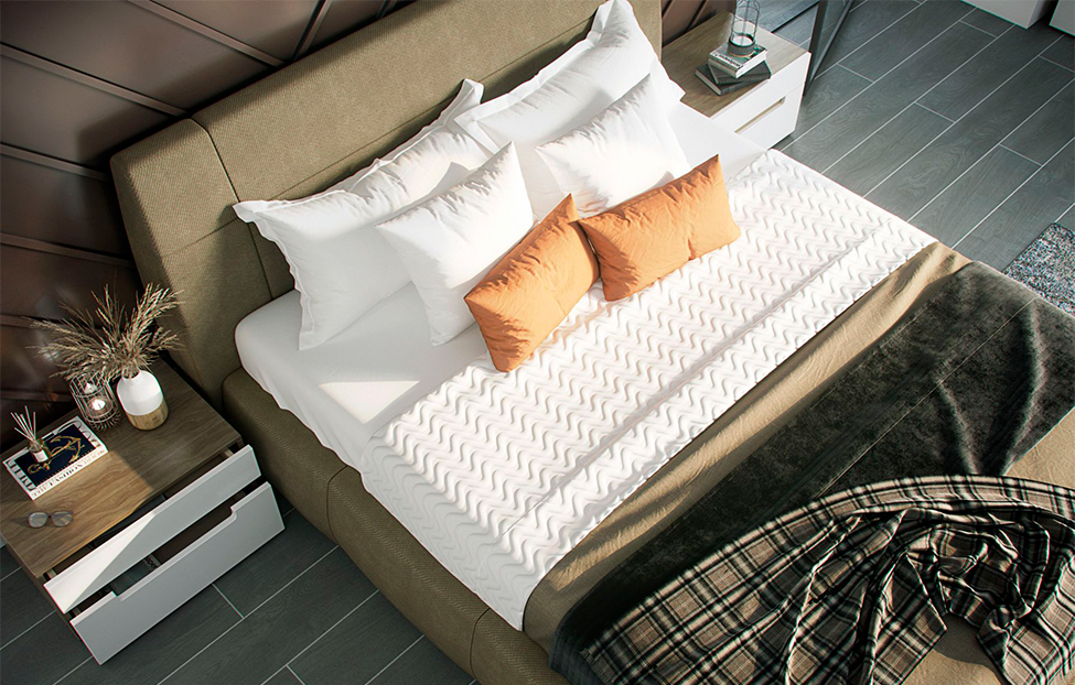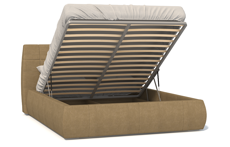 - Кровать мягкая с подъемным механизмом и ящиком для белья;