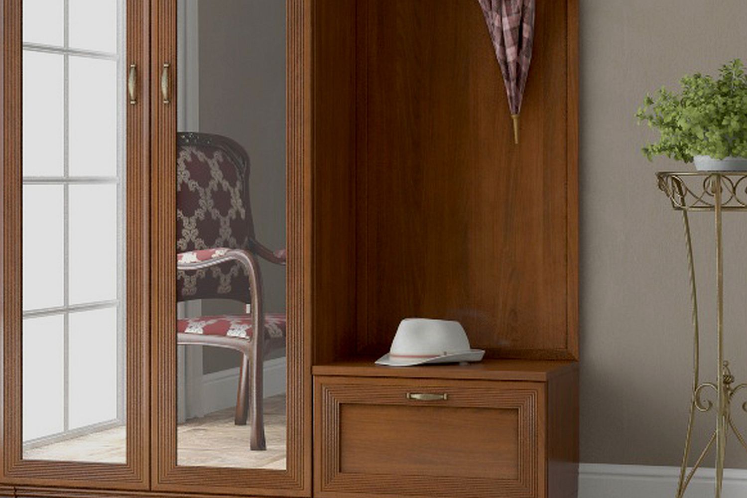 - Адажио — образец сдержанности и изящества, стиля и элегантности. Такая мебель подойдет не только к классическим интерьерам, но и к прихожим в стилях фьюжн, контемпорари и эклектика;