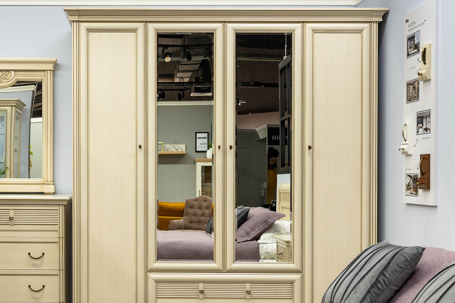 - Четырехстворчатый комбинированный шкаф для одежды;