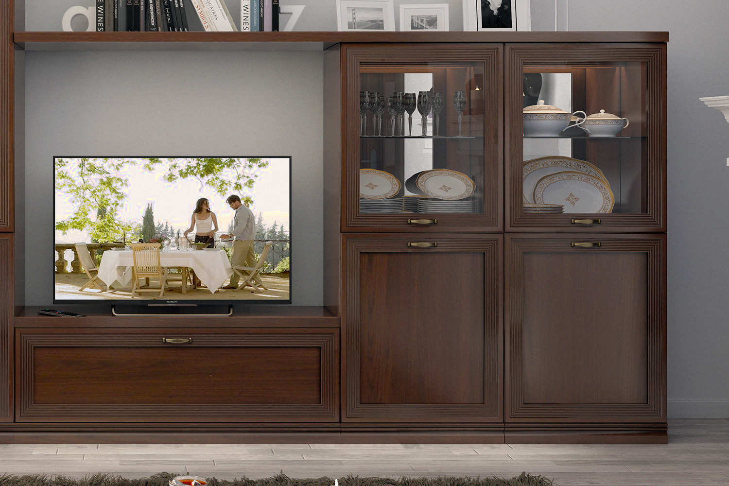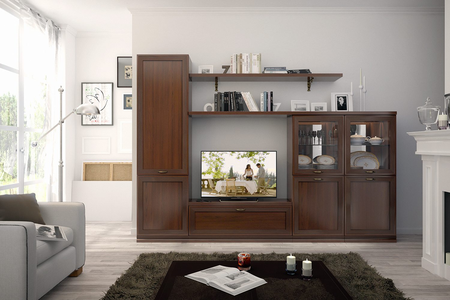 - Гостиная Адажио понравится семейным людям, ценителям классики и традиций. Она создана для уютных вечеров с близкими людьми, размеренному чтению любимых книг и просто приятных кинопросмотров за кружкой чая;