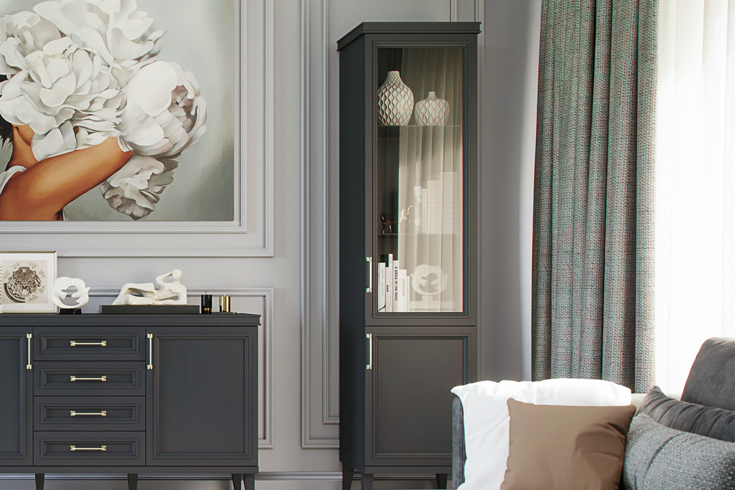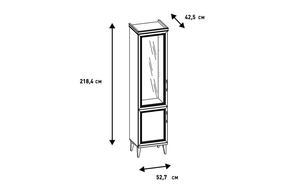 – описание: стиль английский, неоклассика, цвет серый уголь, назначение многоцелевой, размер 218.4x52.7x42.5 см.