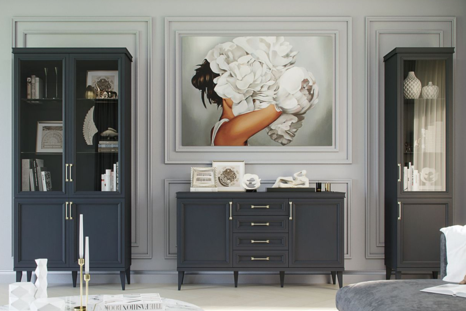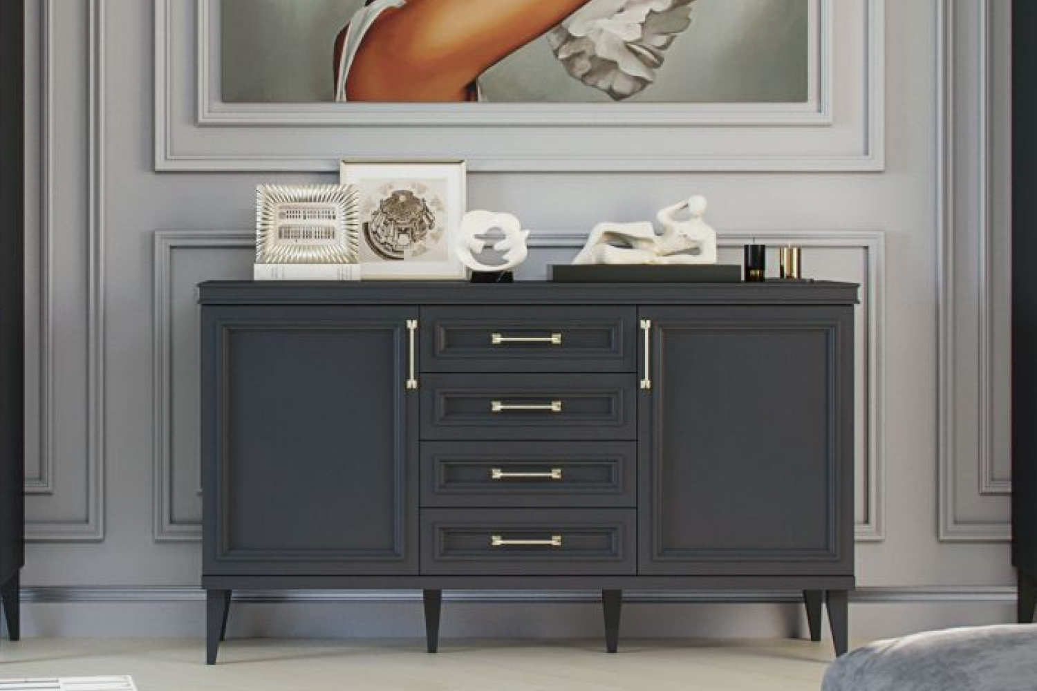 – описание: стиль английский, неоклассика, цвет серый уголь, размер 218.4x307.6x42.5 см.