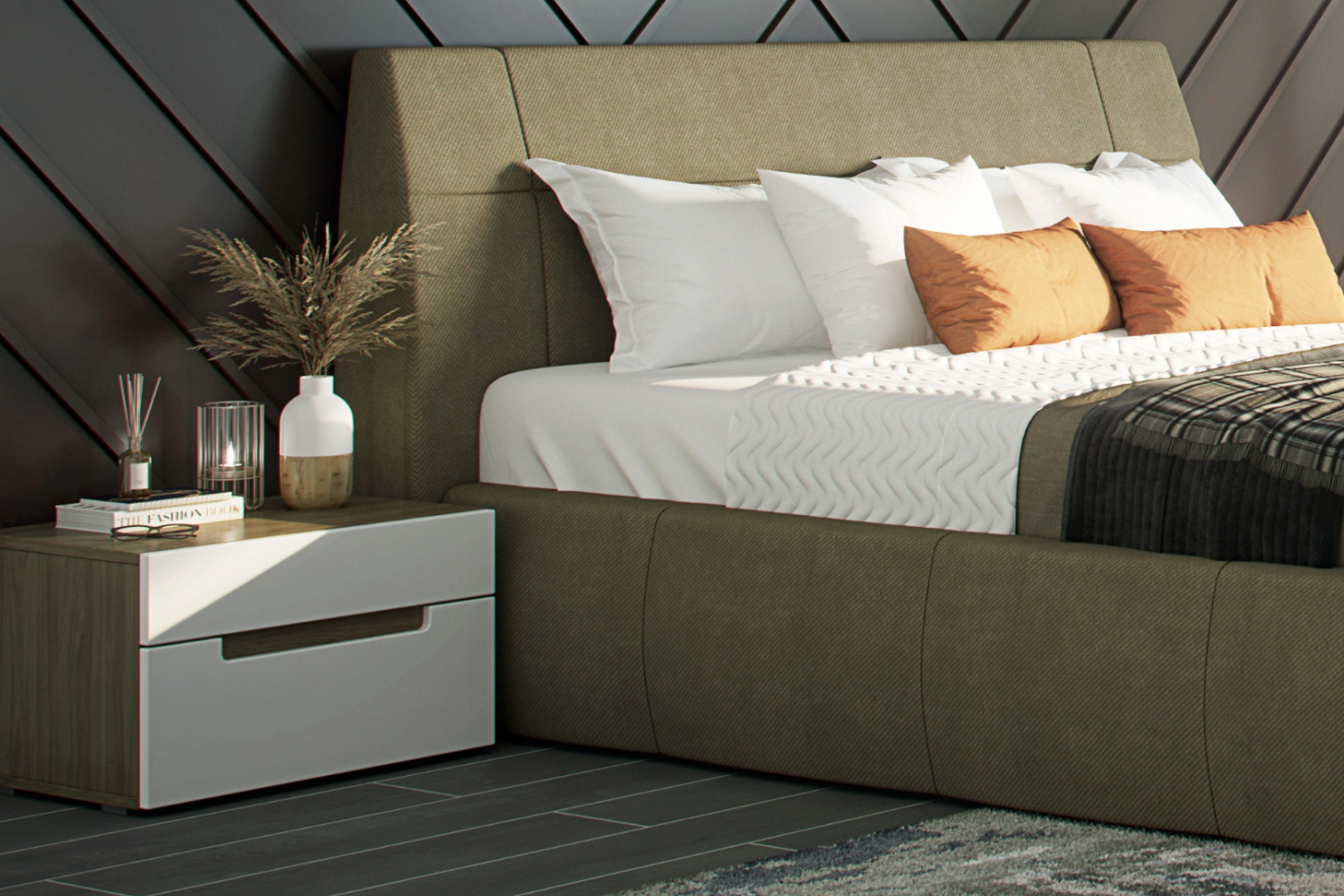 - Мягкий каркас кровати выполнен из ППУ, синтепона и спанбонда. Изголовье, передняя и боковые царги кровати обтянуты мягким велюром. Он легко поддается чистке и позволит чувствовать себя в кровати комфортно;