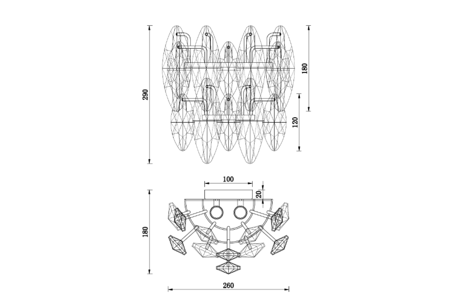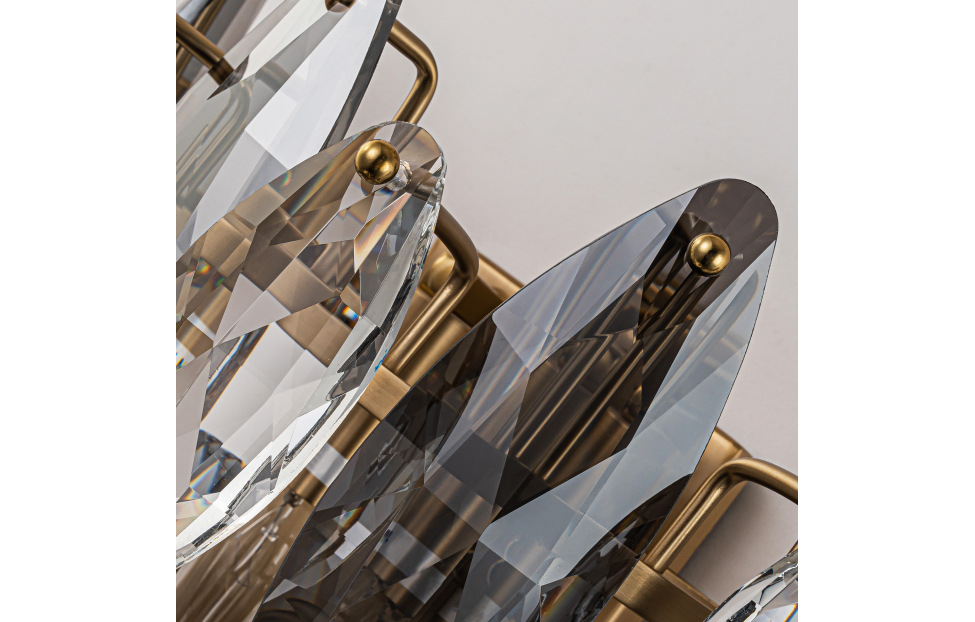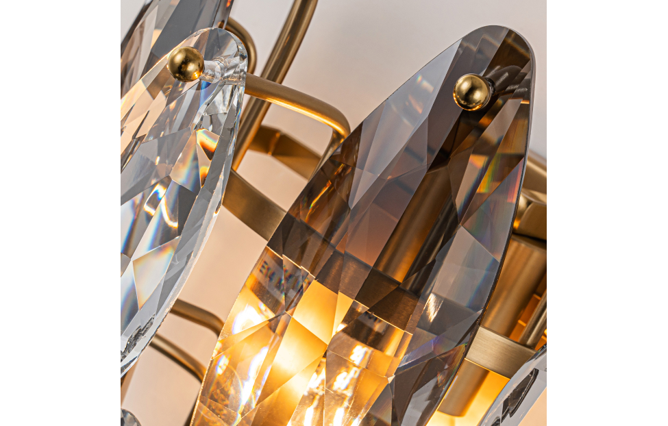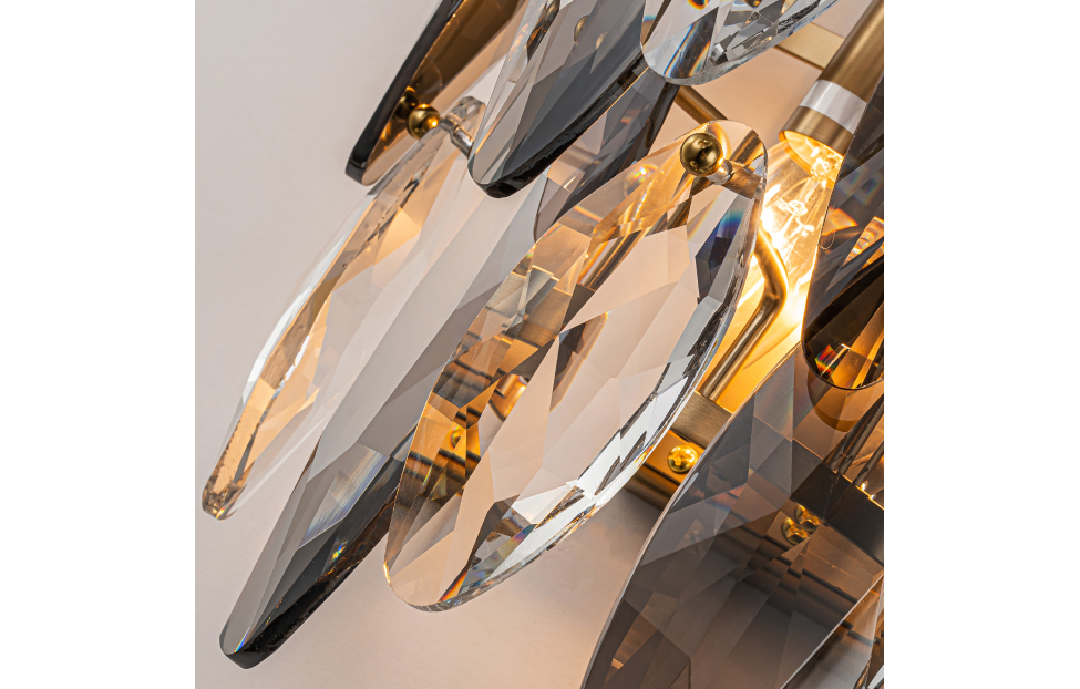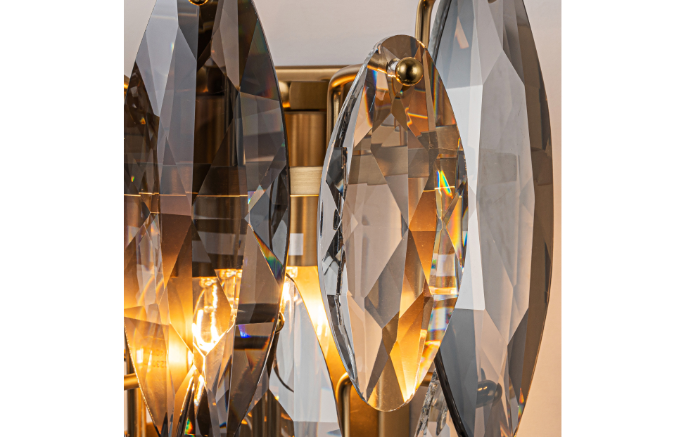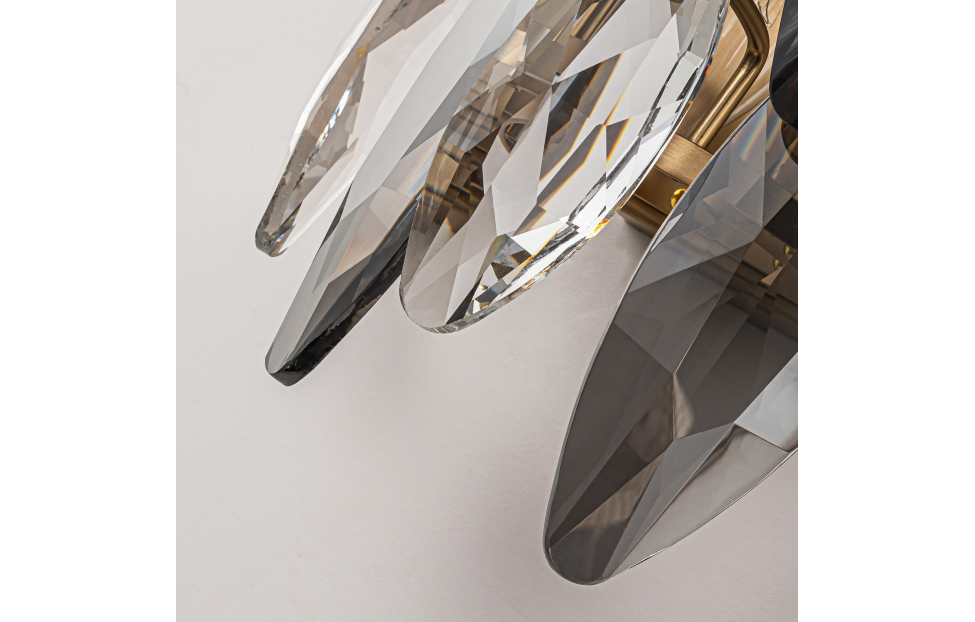 Glans – элегантная кольцевая коллекция, в которой используется прозрачный и серебристо-дымчатый хрусталь в ритмичном чередовании. Металлическая арматура светильника скрыта за хрустальными лепестками, создавая ощущение легкости и невесомости. К этой серии подходят универсальные крепления с помощью которых можно создать кольцевые композиции из нескольких люстр. Металлический каркас в бронзовом цвете лепестки прозрачного и дымчато-серого хрусталя разного размера.