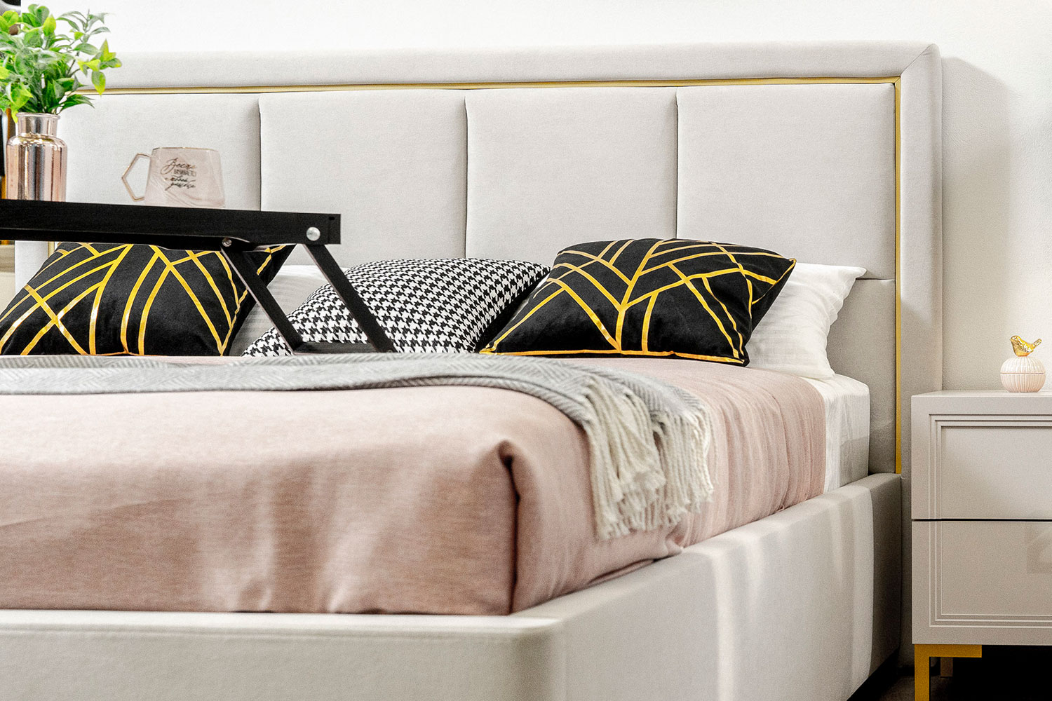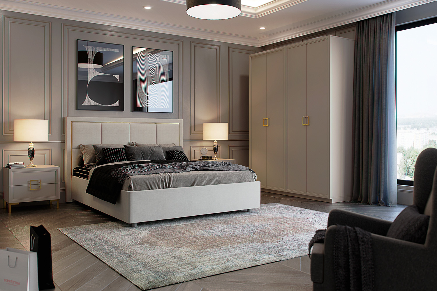– описание: размер спального места 140 х 200 см, материал обивки микровелюр, стиль ар-деко, минимализм, цвет кашемир серый.