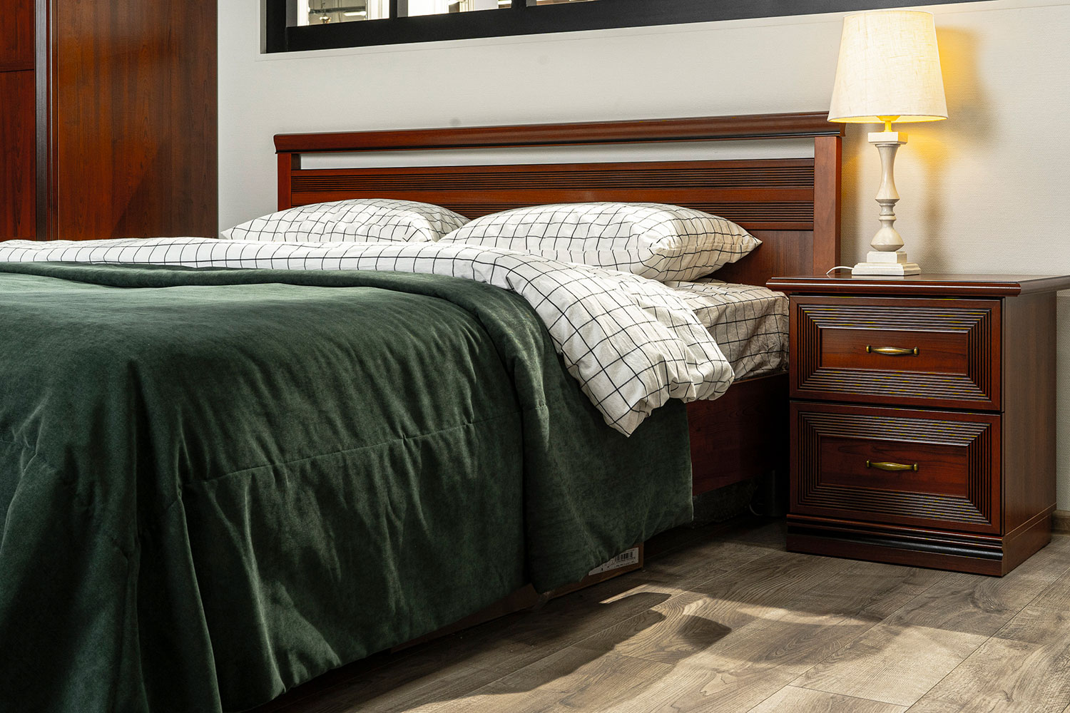 - Опоры кровати изготовлены из массива бука. Они визуально облегчают пространство и делают комнату более «воздушной»;