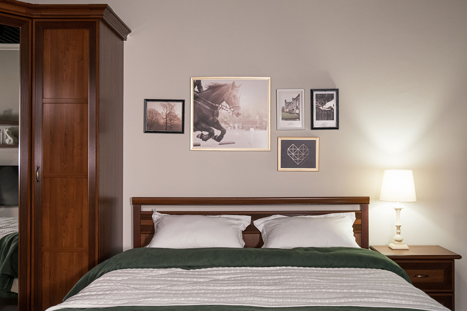 Чтобы сделать интерьер более завершенным, вы можете дополнительно приобрести аксессуары из металла и графичные постеры в базовых оттенках. Для большего удобства композицию можно завершить мягким пуфом или банкеткой в кремовых оттенках или в тон мебели. Конечно же, не забудьте про туалетный столик, который сделает утренние и вечерние ритуалы еще приятнее.