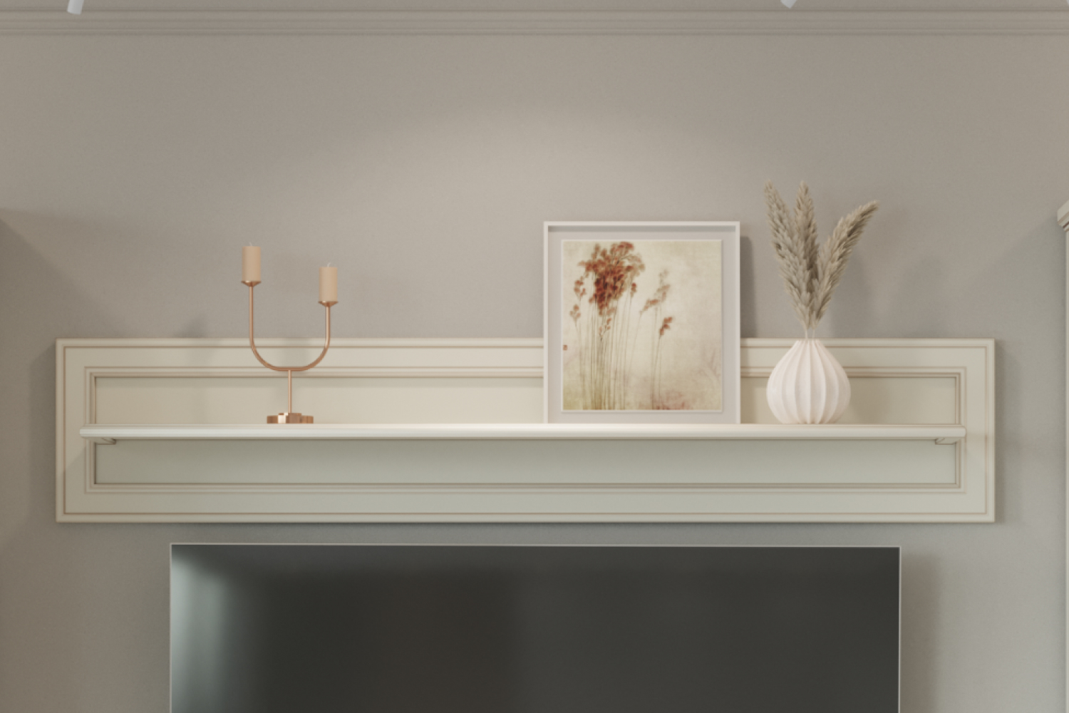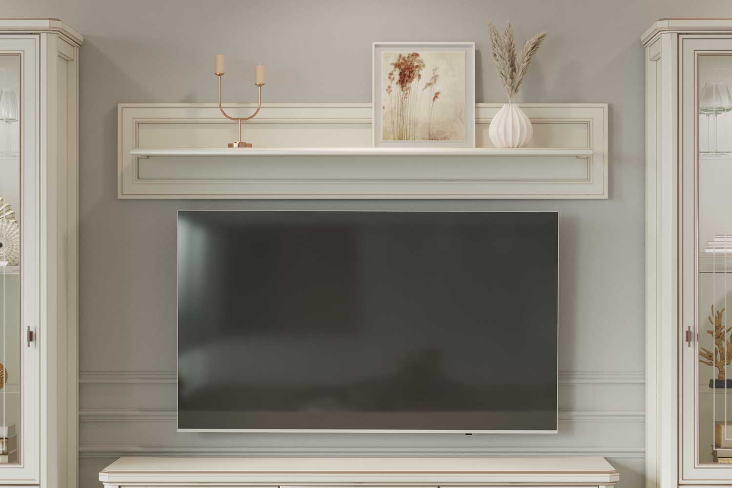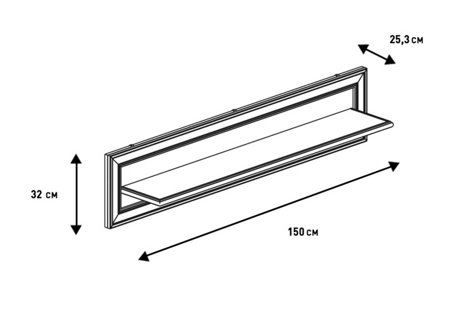 – описание: стиль модерн, эклектика, контемпорари, классический, неоклассика, размер 32x150x25.3 см, цвет бело-серый, назначение универсальное, для работы, для гостиной, для книг, для спальни, для дома.