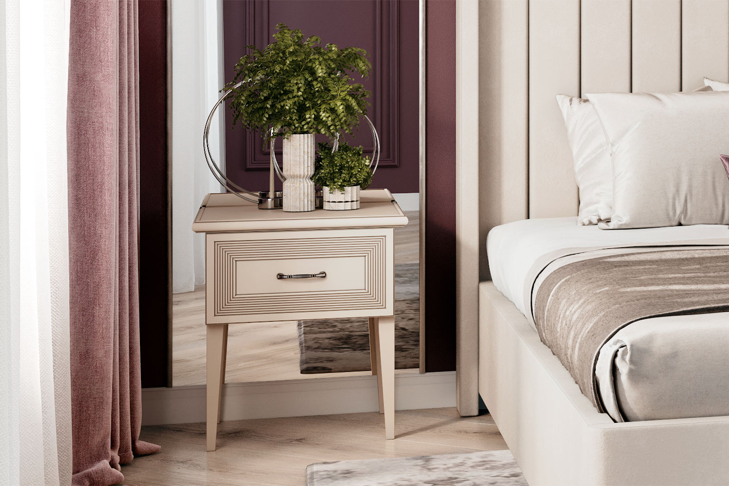 – описание: размер 55.8x51.2x42.5 см, стиль классический, неоклассика, цвет кашемир серый, назначение для спальни.