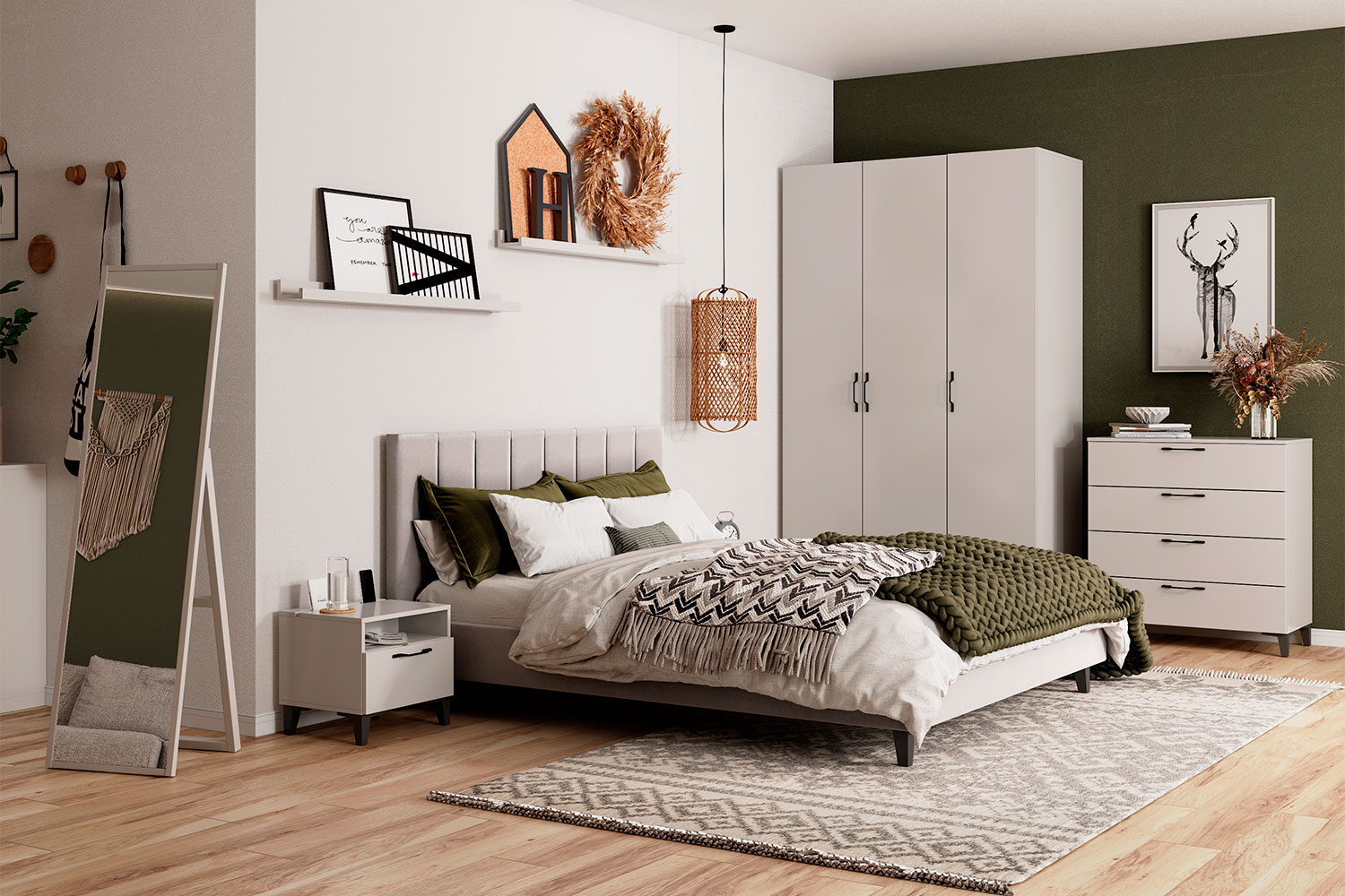 - Мягкая кровать «Нордин» идеально впишется в классический интерьер, который отличается симметричными линиями и сочетает в себе роскошь, эстетичность и практичность. Оттенки серого позволят создать ощущение комфорта в спальной комнате, а это очень важно для нормального отдыха;