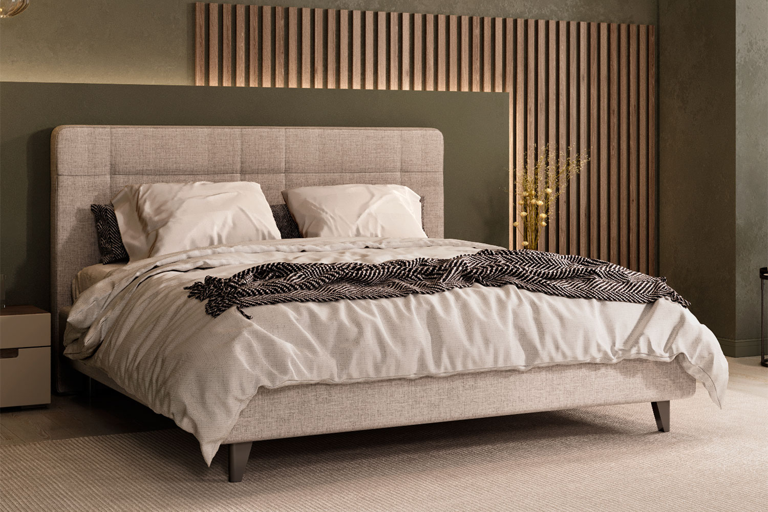 - Изголовье имеет оригинальный внешний вид с отстрочкой, декорировано точечными утяжками;