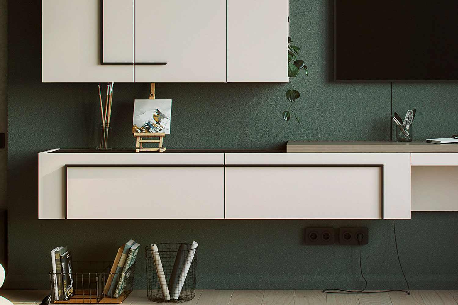 - В выдвижных ящиках используются направляющие скрытого монтажа Слорос со встроенным доводчиком (надвижной монтаж).