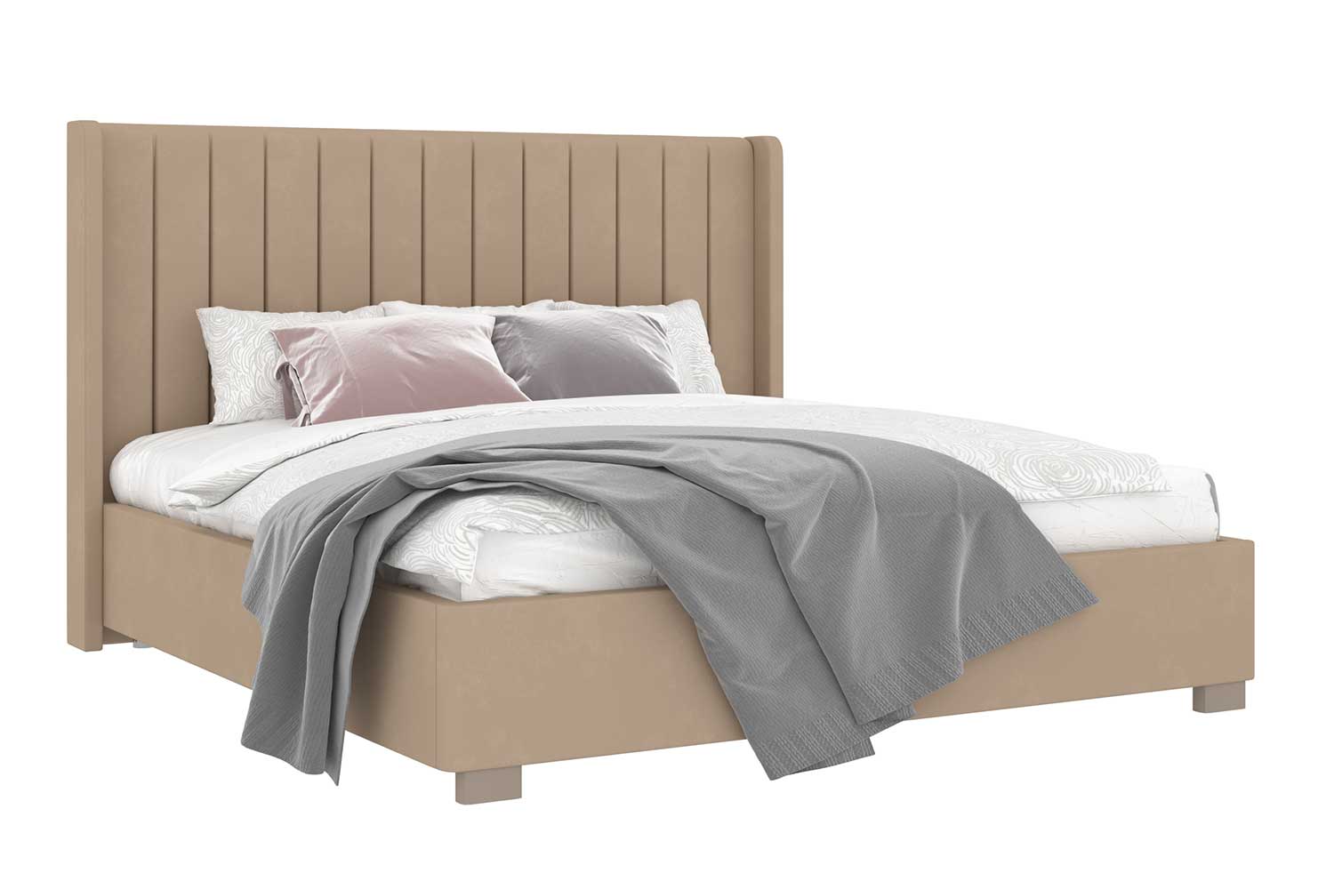 - Кровать выполнена в ткани микровелюр, Simple 42 (бежевый);