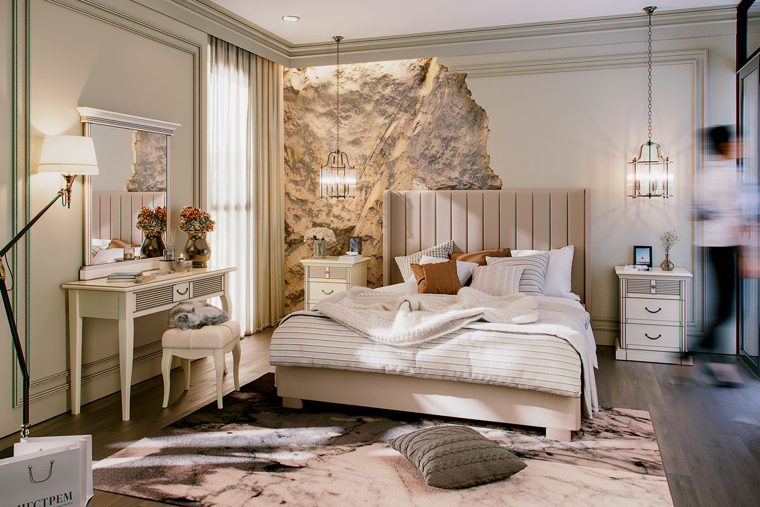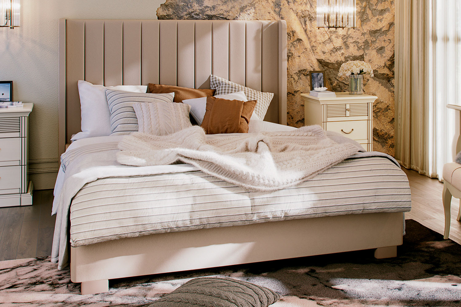 - Изголовье декорировано вертикальными линейными утяжками. Имеет эргономичную форму и размер;