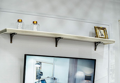 - Для спальни используется крепежная фурнитура и механизмы ведущих производителей Hettich и Titus. Такая фурнитура позволит мебели прослужить дольше, не требуя частого ремонта. Для распашных дверей используются петли Hettich Sensys со встроенным демпфером для «мягкого» закрывания дверей;
