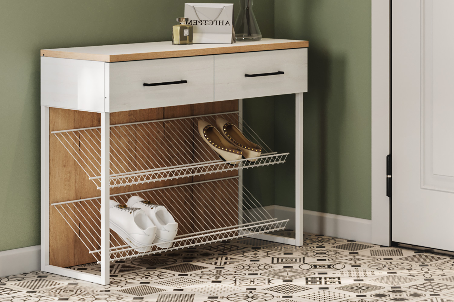 - Тумба для обуви с 2 выдвижными ящиками;