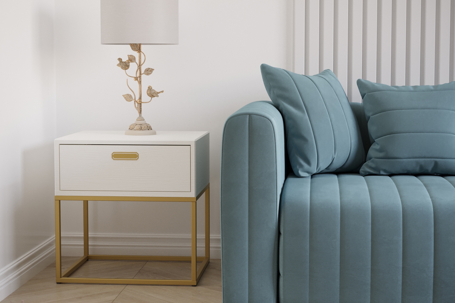 Прикроватная тумба Драйм — это лаконичная модель в современном минималистском стиле. Благодаря своему универсальному дизайну и функциональной простоте, она может вписаться в любой современный интерьер. Простая геометрическая форма смотрится легко и не загромождает пространство. Тумба выполнена из материала ЛМДФ 16 мм в сочетании с металлическим профилем 15 мм в цвете белый и золото. Шариковые направляющие push-to-open позволяют открывать ящик нажатием. В комплект входит вся необходимая фурнитура и удобная инструкция для сборки. Максимальная нагрузка до 15 кг, на ящик до 10 кг.