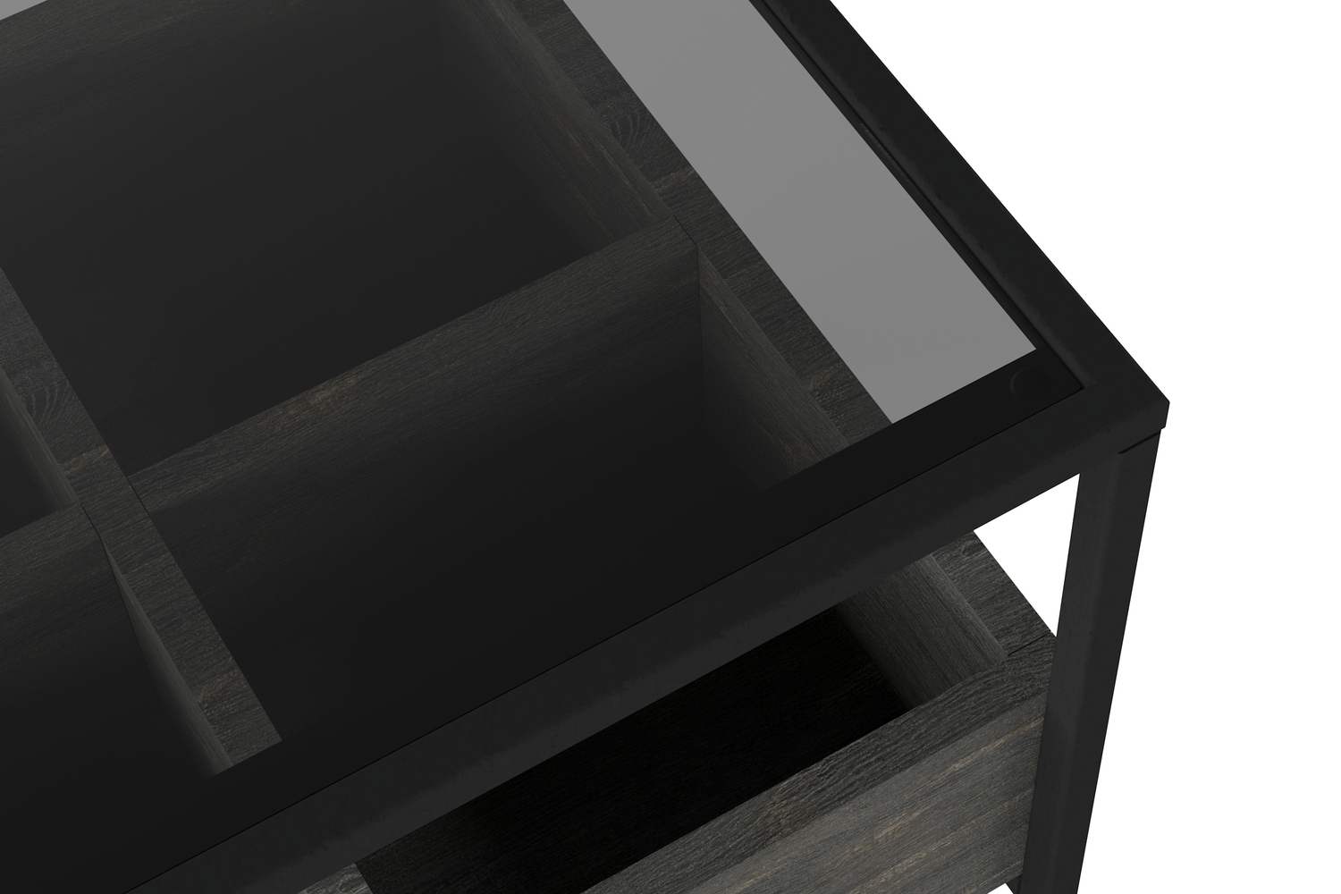 Прикроватная тумба Кассо выполнена в современном лаконичном стиле и уместно дополнит интерьер спальной комнаты. Стильная тумба приковывает внимание, прежде всего, своим исполнением: комбинацией материалов. Стеклянная столешница из тонированного закаленного стекла в сером цвете дополнена ячейками из ЛДСП для удобного хранения подручных вещей. А прочный металлический каркас толщиной 15 мм обеспечивает высокую прочность и устойчивость. В комплект входит вся необходимая фурнитура и удобная инструкция для сборки. Максимальная нагрузка на стекло до 5 кг, на ящик до 10 кг.