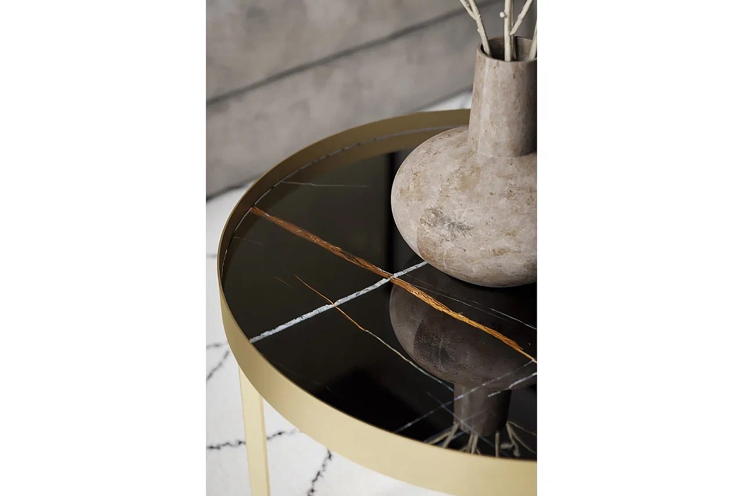 Журнальный столик «Тайлер» привлекает своим элегантным оформлением в современном стиле с элементами ар-деко и неоклассики. Круглая стеклянная столешница с мраморным рисунком смотрится выразительно в сочетании с подстольем. Оригинальная модель журнального столика найдет свое применение как в жилом, так и в офисном помещении. Он станет главным акцентом сдержанного дизайна.