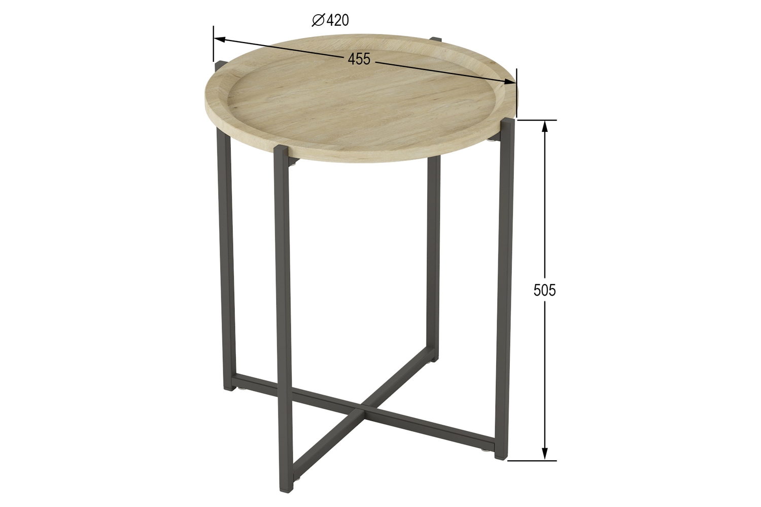 Журнальный столик «Бьерни» в стиле лофт станет удачным аксессуаром для современного интерьера. Круглая, слегка вогнутая столешница с оригинальным бортиком изготовлена в нескольких цветовых решениях, лаконичный контраст которым придает однотонный каркас.