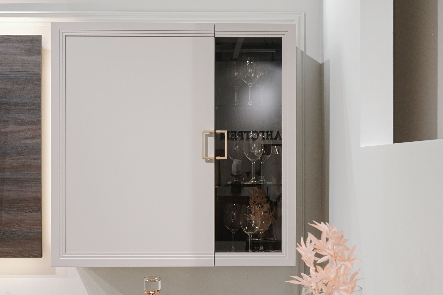 - Фасады: ЛДСП 1,6 см с наклеенным профилем, рамочный фасад со вставкой из тонированного стекла;