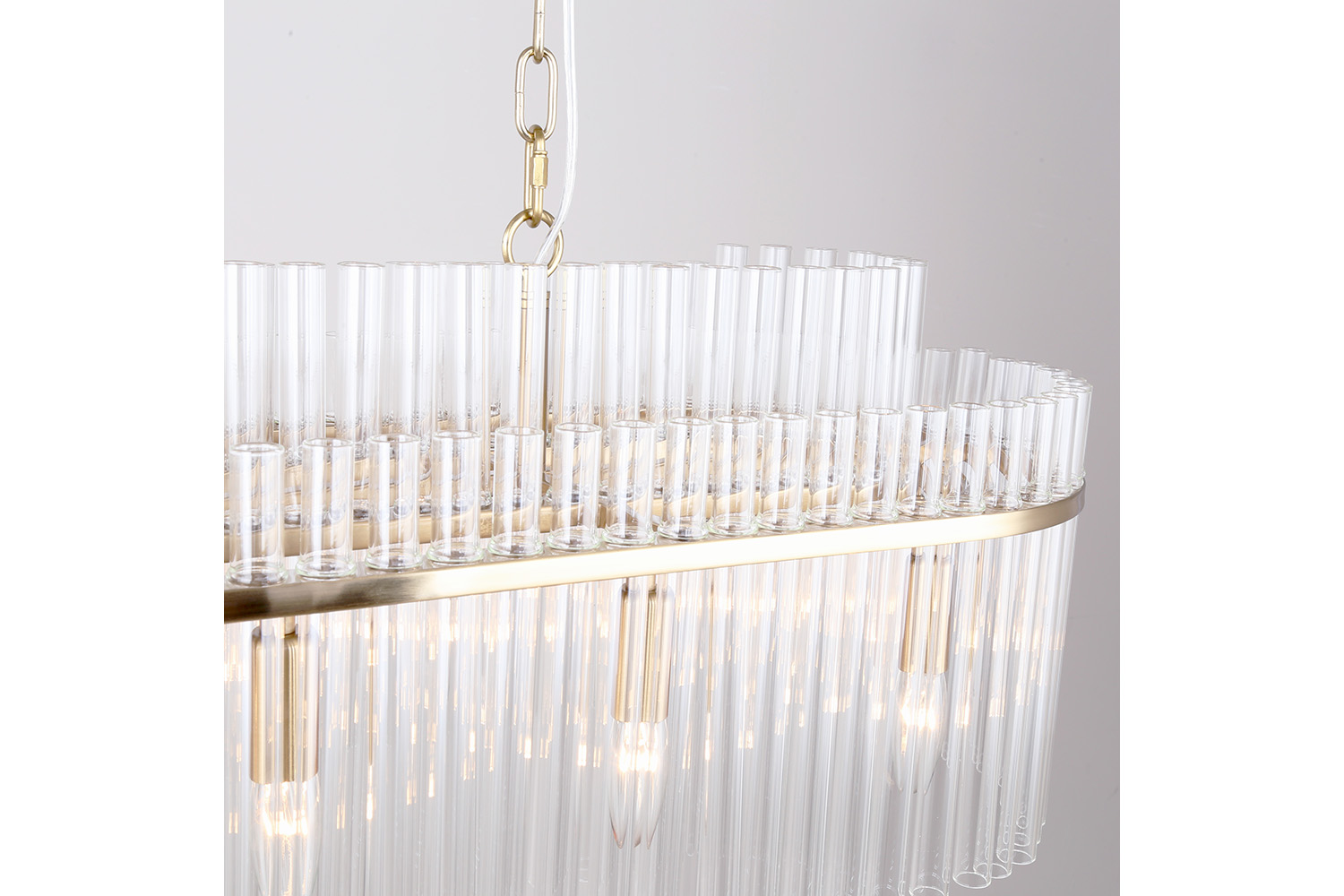Коллекция светильников Rubum в американском стиле на цепочных подвесах создает впечатление воздушности и легкости. Латунный цвет отделки придает этим люстрам статусность. Многослойный декор из выдувных стеклянных трубочек создает ощущение динамики. Выдувные стеклянные трубочки — это уникальный элемент декора, который создается вручную. Люстры из этой коллекции привлекут внимание своим нестандартным и оригинальным видом. Они станут идеальным дополнением к пространству в стиле лофт, модерн, неоклассика.