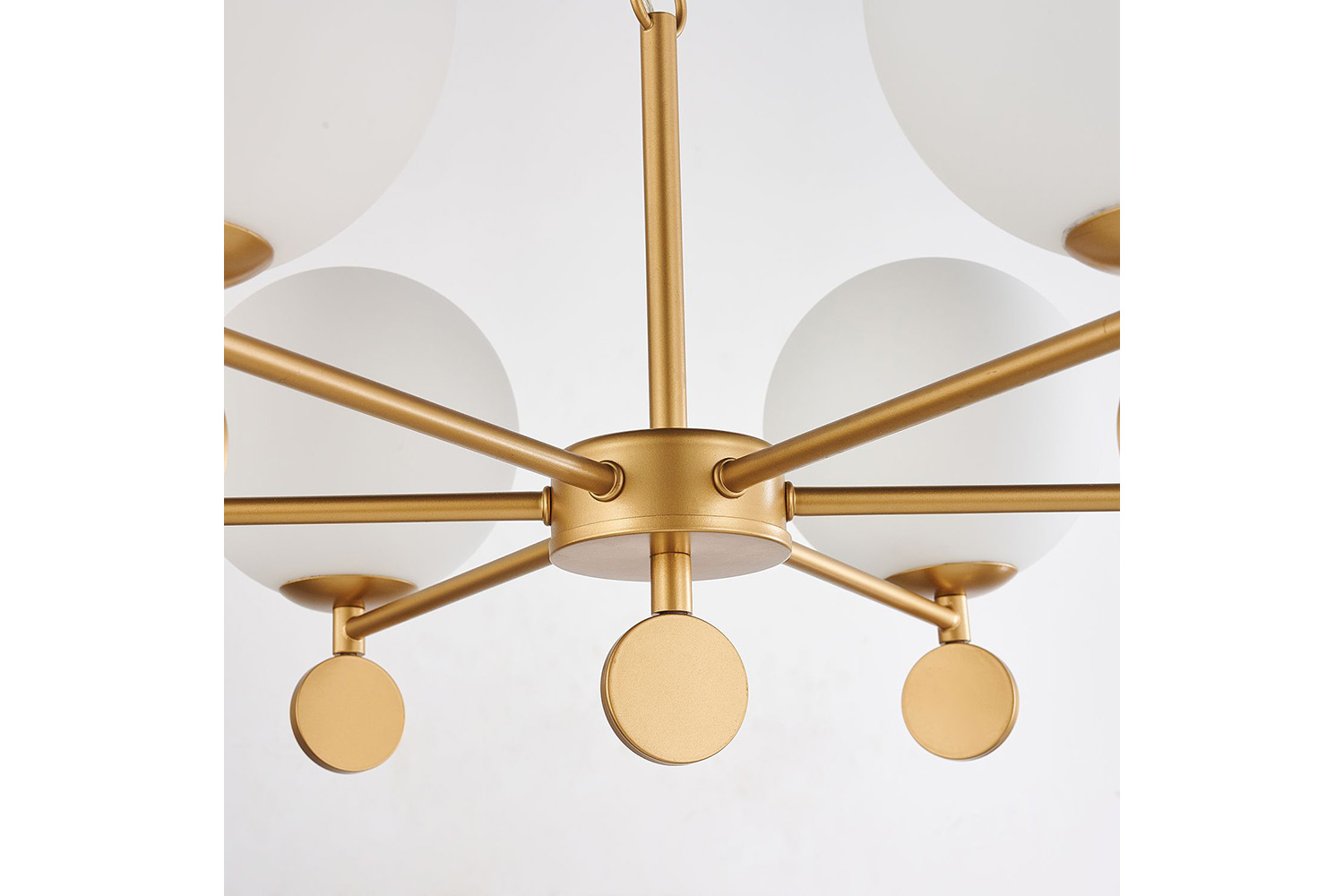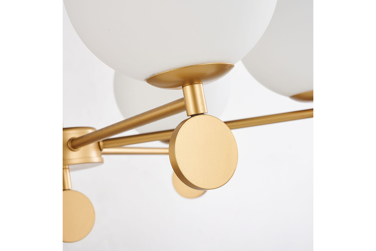 Коллекция Absolute выполнена в цвете «окрашенное золото». Круглые выдувные плафоны дизайнерски обыграны круглым декором в виде металлических дисков. Интересным решением является возможность двустороннего монтажа люстры — как плафонами вверх, так и вниз.